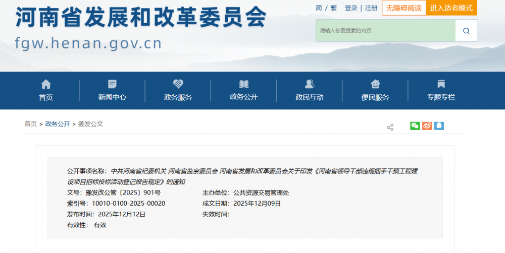 16条“高压线”!河南发文严管领导干部违规插手干预招投标