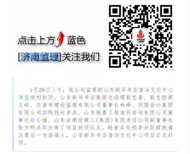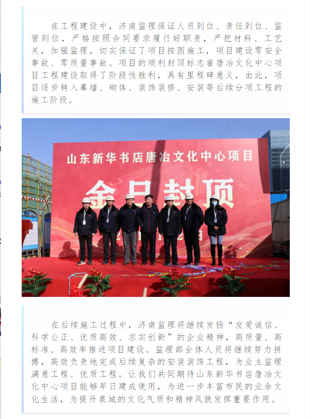 我公司监理的山东新华书店唐冶文化中心项目顺利封顶