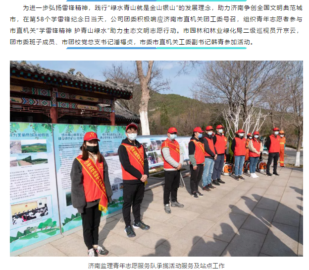 “学雷锋精神 护青山绿水”——济南监理青年志愿者参加市直机关团工委助力生态文明志愿行动